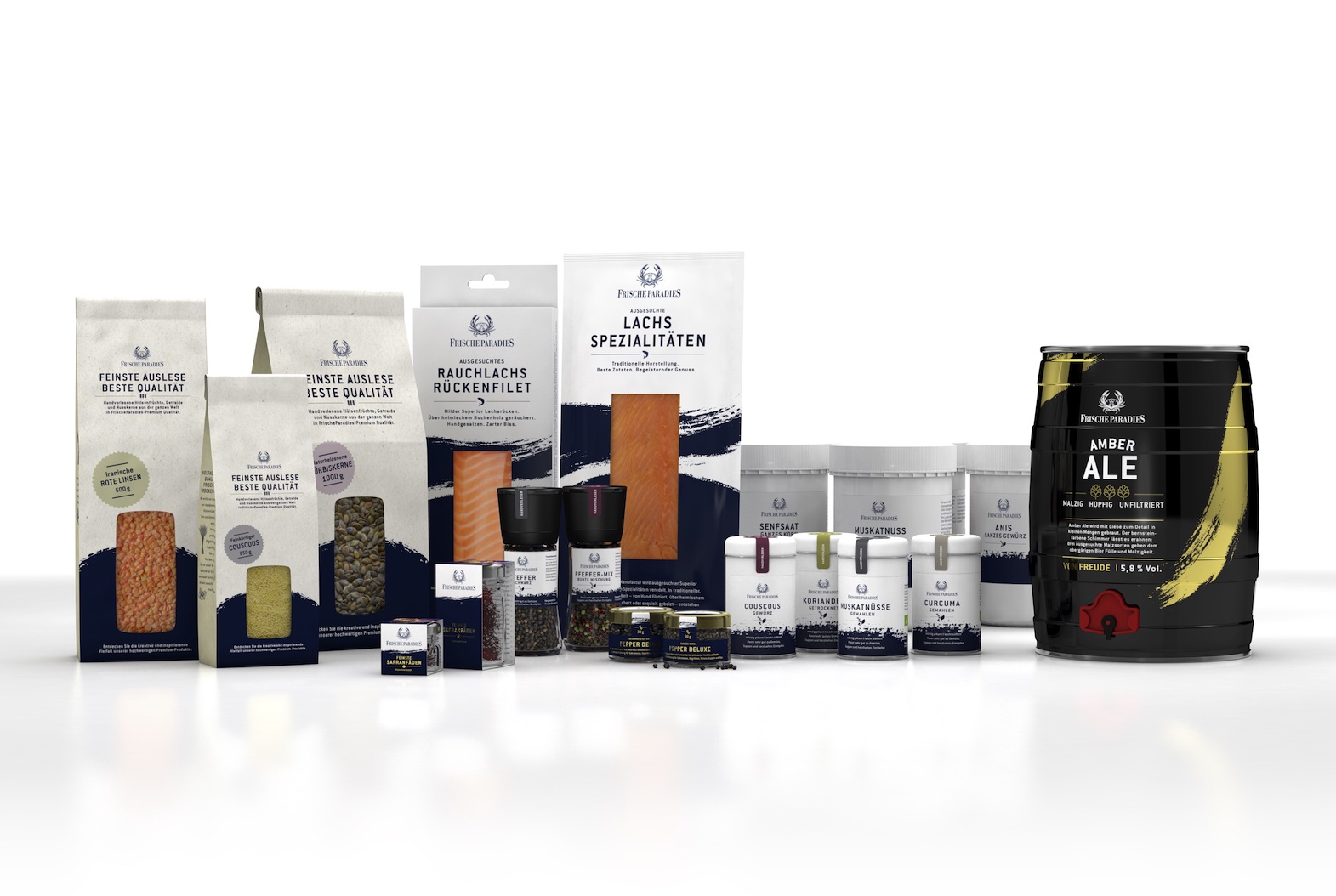 Zentrales visuelles Gestaltungselement des von der Werbeagentur Münzhartmann gestalteten neuen Verpackungsdesigns ist der Brush, ein tiefblauer handgeschwungener Pinselstrich, der je nach Produktgruppe mal verwischter, mal präziser ausfällt. Er soll die gehobene Lebensart und die handwerkliche Herstellung vieler Produkte unterstreichen, zum Beispiel beim Rauchlachs Rückenfilet. „Vielen Kunden ist das edle neue Verpackungsdesign gleich aufgefallen und wir bekommen täglich positive Rückmeldungen aus unseren elf Niederlassungen. Das freut uns genauso wie die hohe Auszeichnung mit dem German Brand Award in der Kategorie „Excellence in Brand Strategy and Creation Brand Design“, sagt Christian Horaczek.