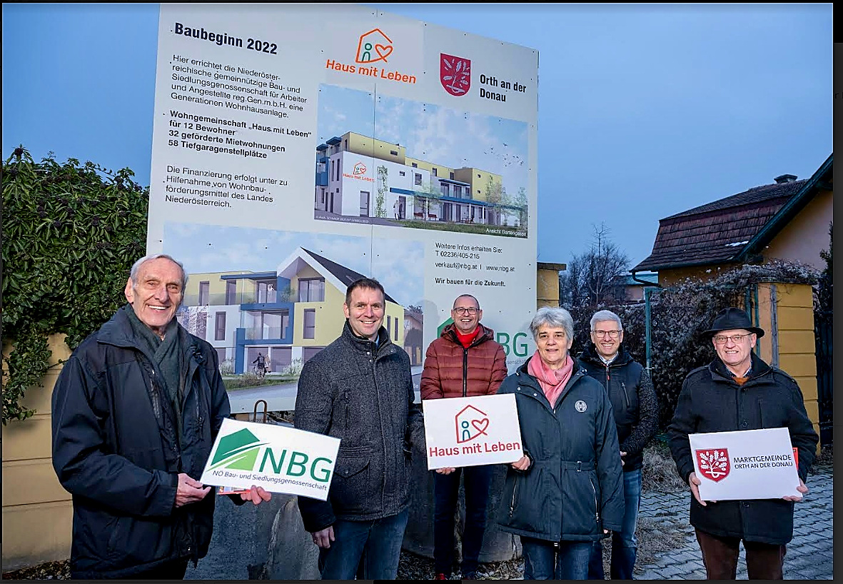 Auf knapp 700m2 wird in Orth/Donau Wohn- und Lebensraum für 12 (schwerst) behinderte Menschen geschaffen (Haus mit Leben). Professionelle Betreuung und Pflege wird rund um die Uhr zur Verfügung gestellt für die BewohnerInnen. Das Haus mit Leben soll ein Ort der Begegnung für alle werden, daher auch die unmittelbare Einbindung in ein neu gestaltetes Wohnprojekt der Niederösterreichische gemeinnützige Bau- und Siedlungsgenossenschaft (NBG). Der großzügig angelegte Gartenbereich, sowie freundliche mit Wärme und Liebe gestaltete Wohn-und Aufenthaltsbereiche werden wesentliche Bestandteile zum Wohl fühlen sein.