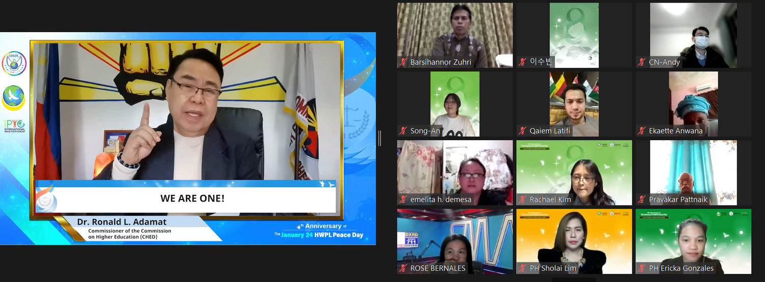 Als Vertreter des philippinischen Bildungssektors teilte Kommissar Ronald Adamat von der Kommission für Hochschulbildung (CHED) mit: "Die CHED-Bankkommission hat Präsident Duterte aufgefordert, den 24. Januar zum 'Nationalen Friedenstag' zu erklären, der die gleichzeitige Feier und Einhaltung des Friedens durch Friedensaktivitäten, -veranstaltungen und -zeremonien durch alle staatlichen Einrichtungen und Behörden, einschließlich des privaten Sektors, vorsieht. Dies soll auch im Bildungsbereich gefeiert und beachtet werden.